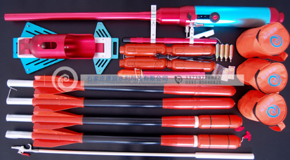 底子设置装备摆设:发射器、气瓶、绳子、充气管、救生圈(水用)等